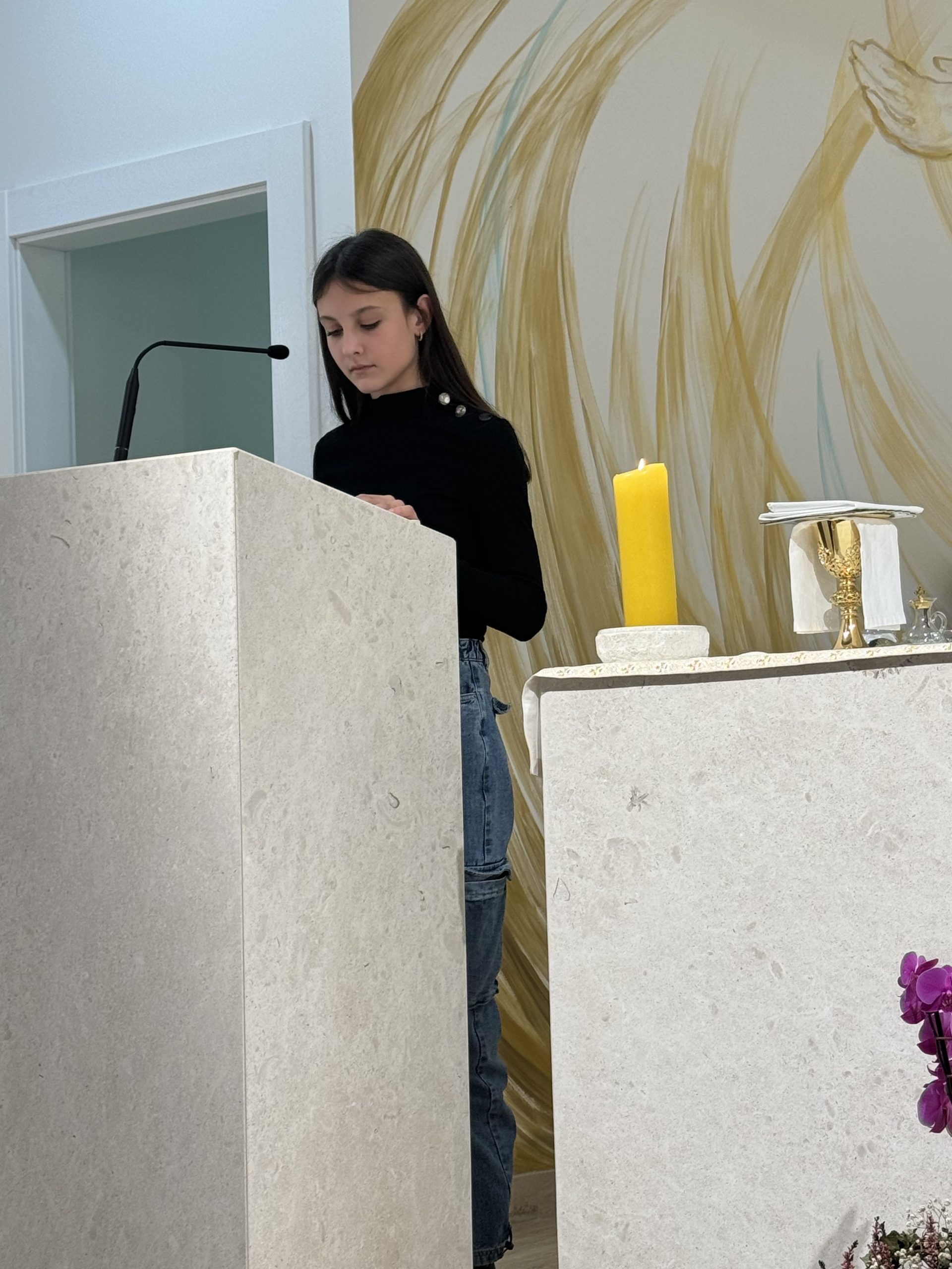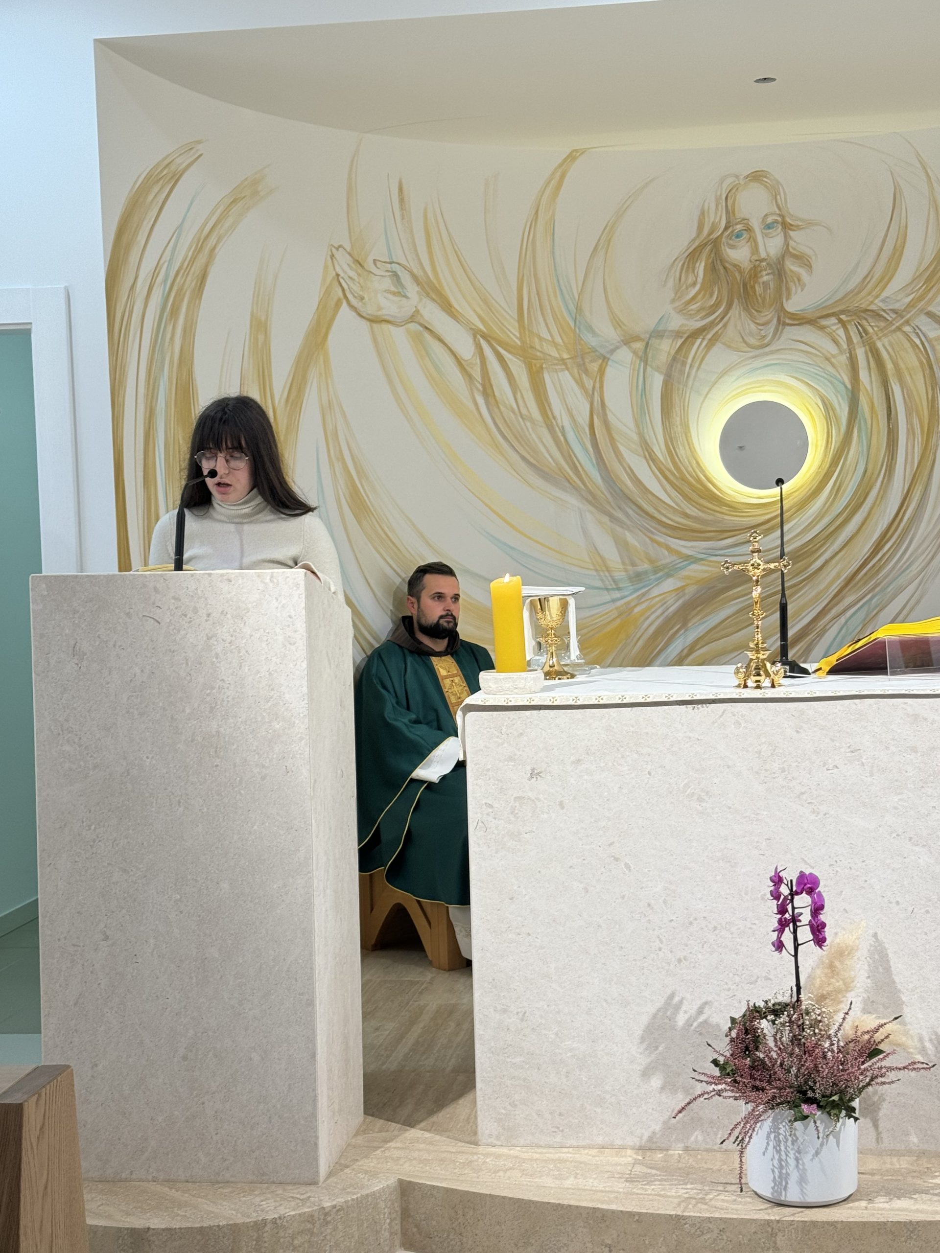 U euharistijskom slavlju koje je predslavio fra Jure Šekerija krizmanici su molili za nedavno preminulu učenicu Manuelu Kuna. Animirali su liturgijsko pjevanje, ministrirali i čitali liturgijska čitanja na sv. Misi.