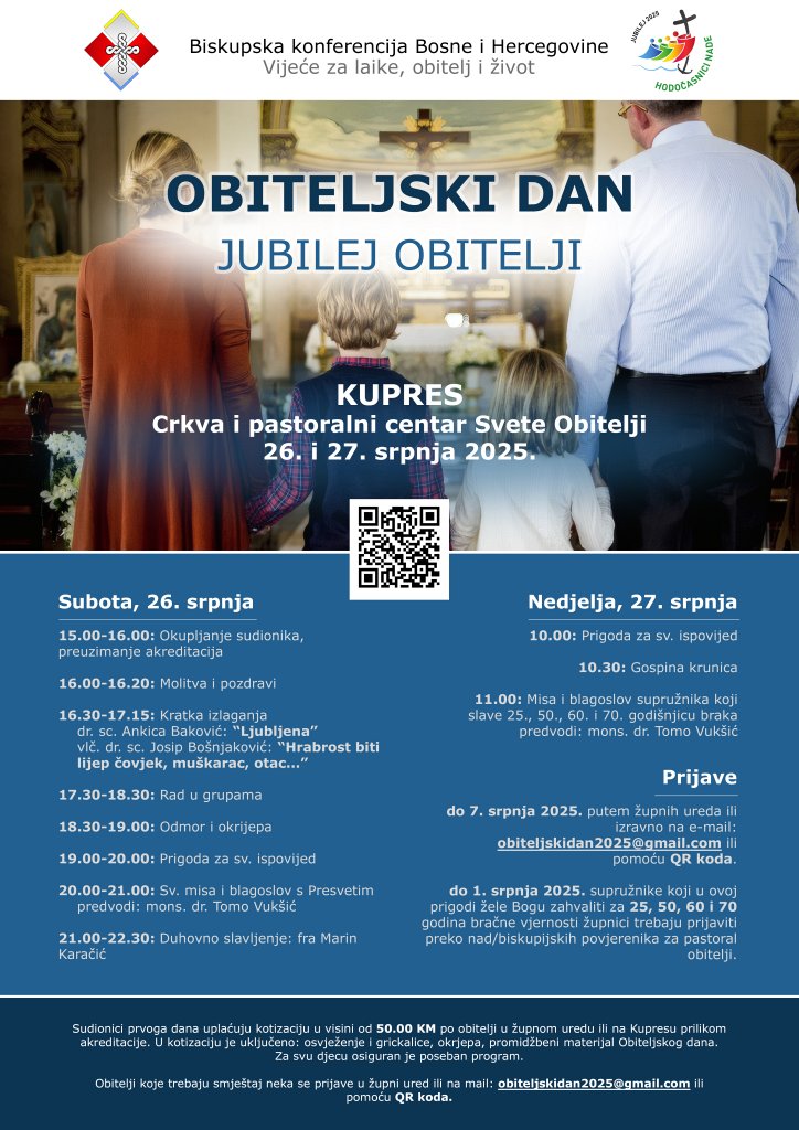 VIII. Obiteljski dan u Bosni i Hercegovini, kao i ranijih godina, bit će održan u posljednju nedjelju u mjesecu srpnju odnosno 27. srpnja 2025. u župi Svete Obitelji u Kupresu. https://www.ktabkbih.net/hr/najave/najava-viii-obiteljski-dan-u-bosni-i-hercegovini/126602